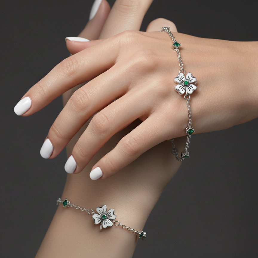 5.600 تا 7 گرم با توجه به سایز و تعداد شبدر های میانی دستبند