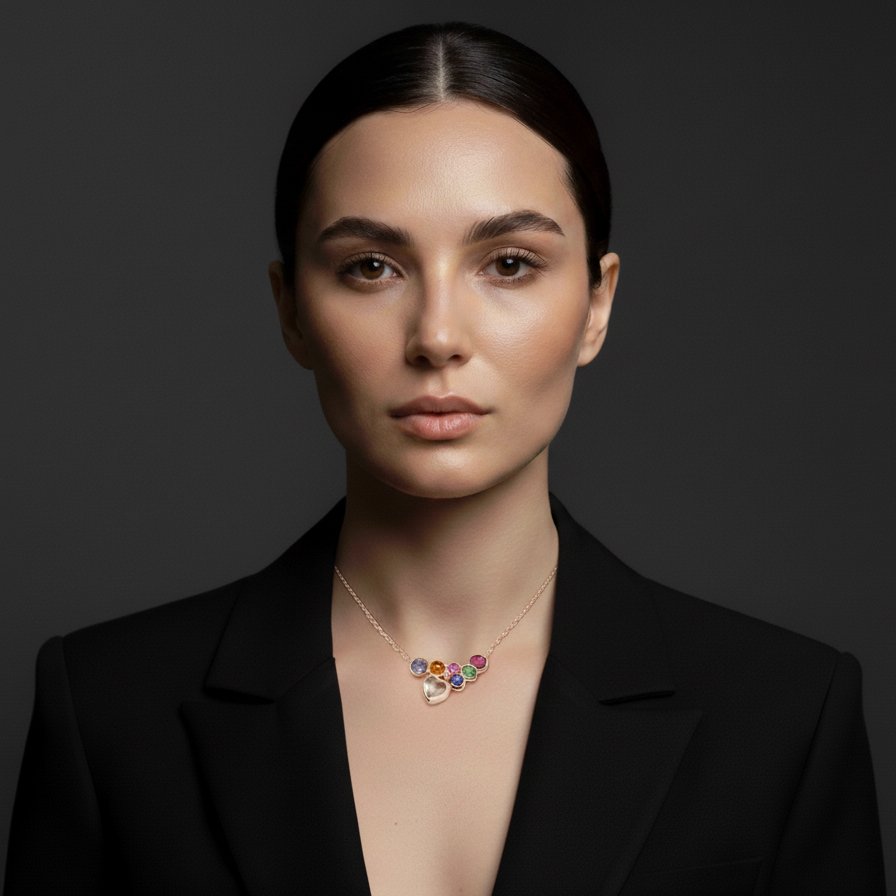 گردنبند قلب رنگینکمانی، ترکیبی از زیبایی سنگهای قیمتی و نماد محبت است.